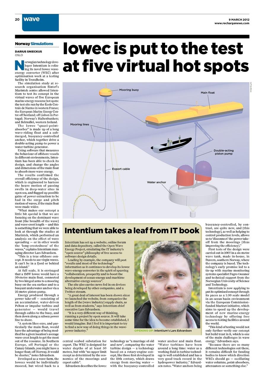 Featured in RECHARGE This week Intentium and open wave energy project is featured in the global renewable magazine RECHARGE. You can read or download the article here. |
