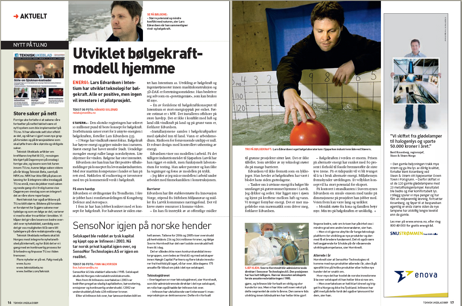 Teknisk Ukeblad For the second time, an article about Intentiums Wave power project in presented in Norwegian Teknisk Ukeblad. Please comment! Read more (norwegian). |